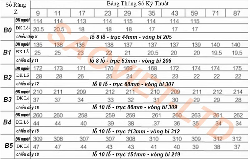 Đường kính ngoài: 40mm – 250mm tùy loại hộp số