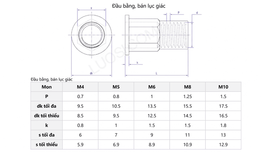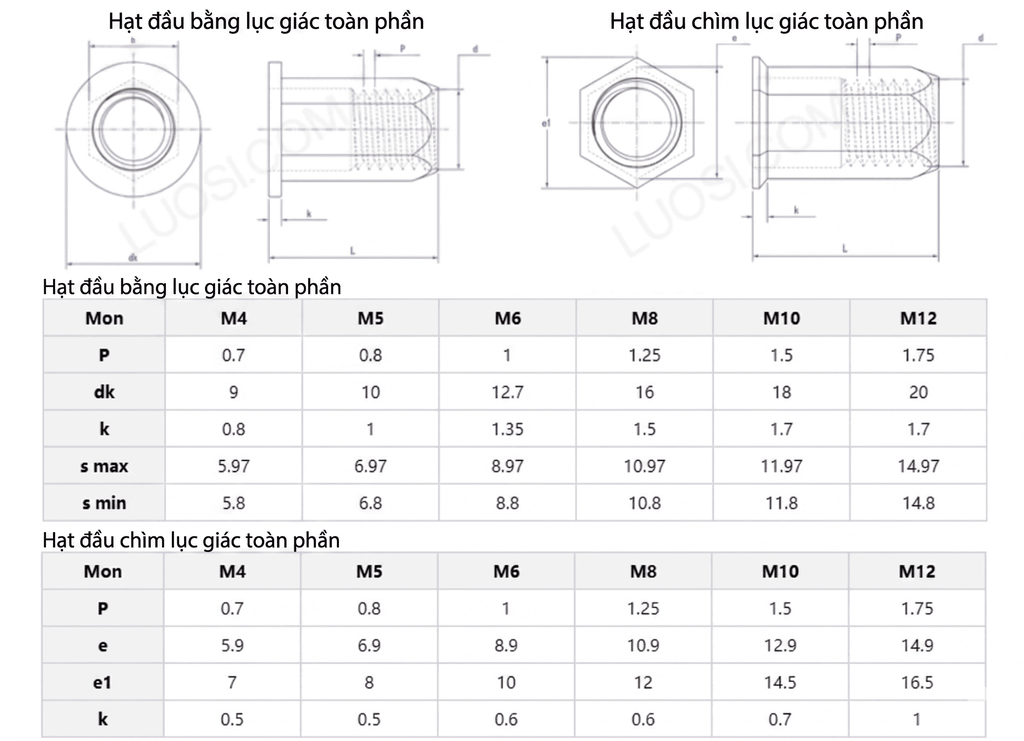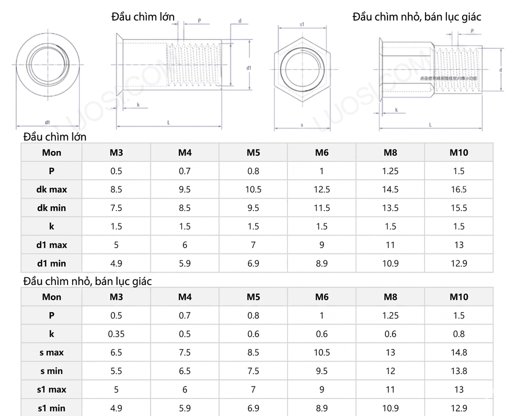 - Kích thước: M3, M4, M5, M6