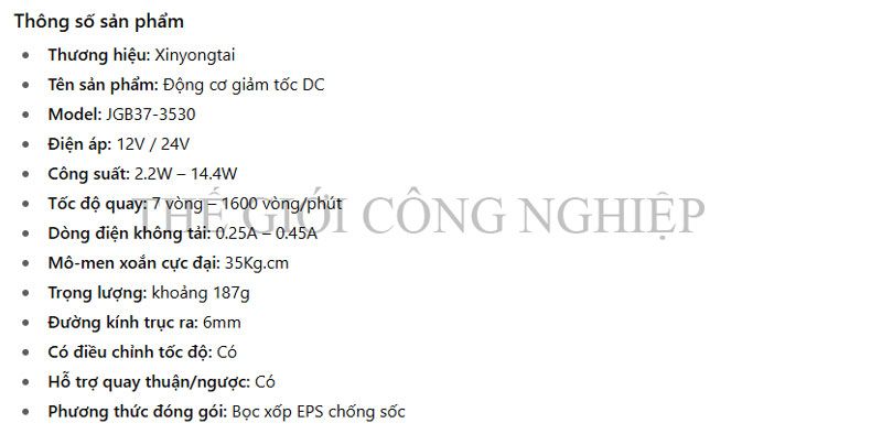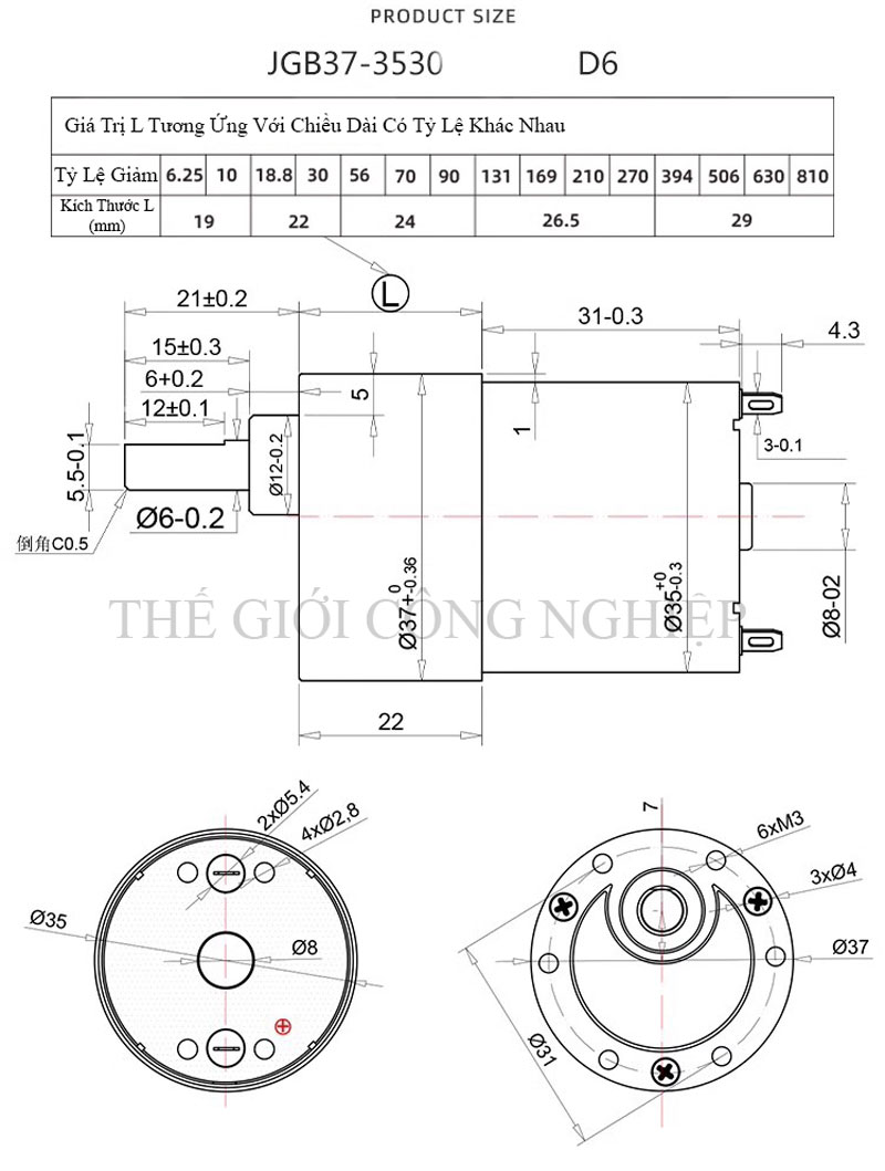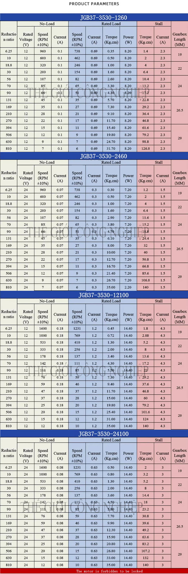 Mô tả chi tiết Động cơ giảm tốc JGB37-3530 – Động cơ DC mini 6V/12V/24V, hộp số kim loại, mô-men xoắn lớn