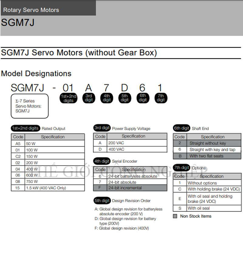 Mô tả chi tiết Động Cơ Servo SGM7G-09AFC61 / 13AFC / 20AFC / 30AFC / 44AFC / 55AFC