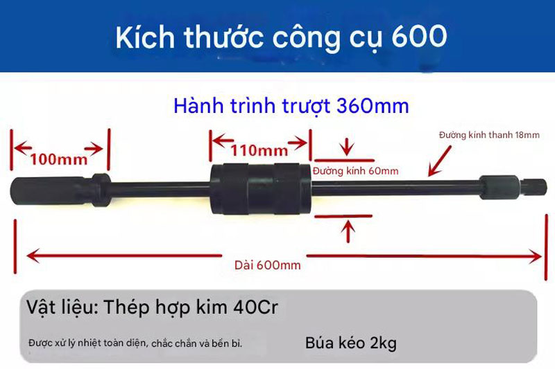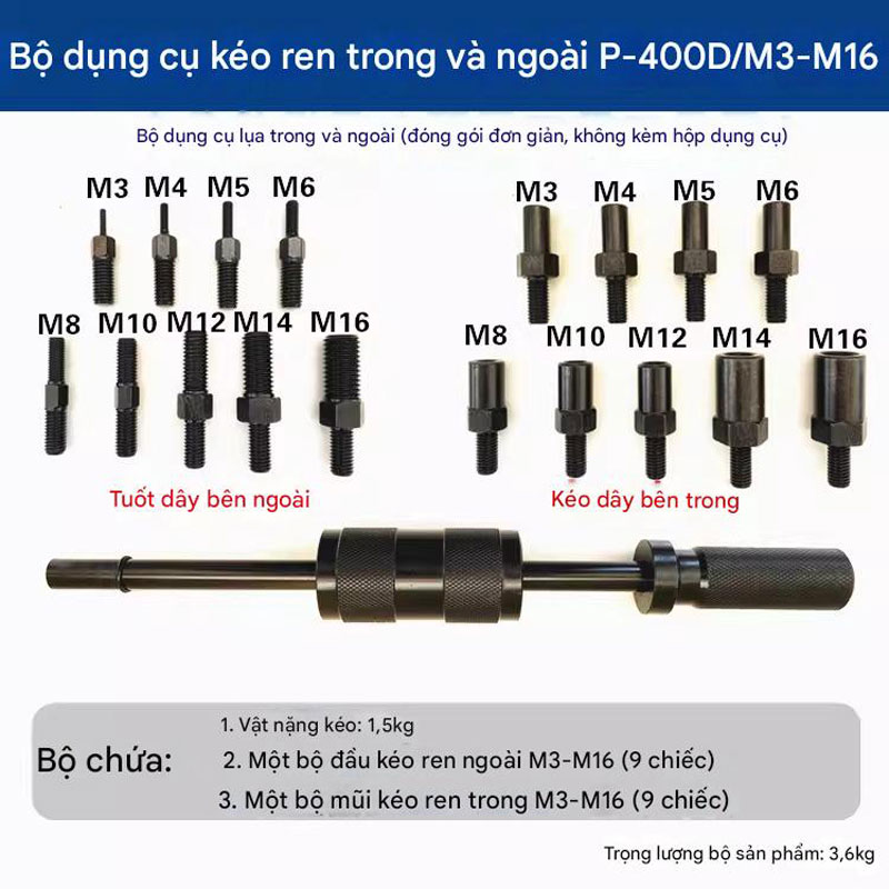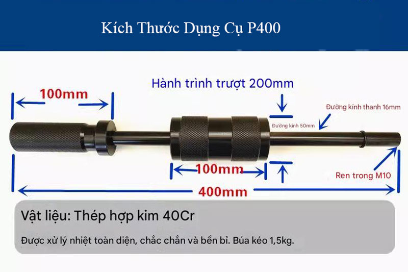🛠️ Mô tả chi tiết: Dụng Cụ Rút Chốt Nặng P400AB/P600 – Búa Trượt Tháo Chốt M3–M30