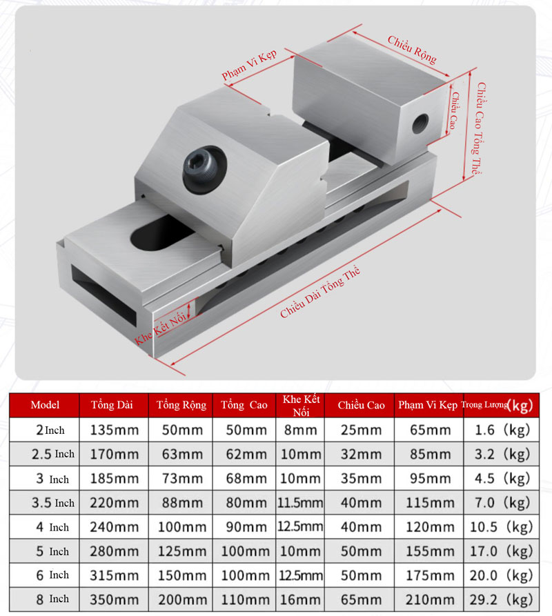 Ê Tô Gá Kẹp Độ Chính Xác Cao QKG 2inch, 2,5inch, 3inch, 4inch, 5inch, 6inch, 8inch