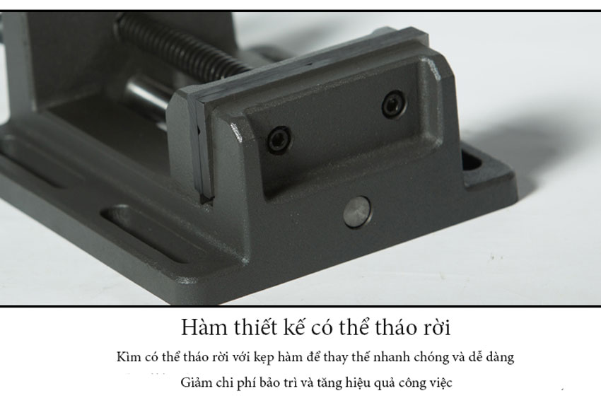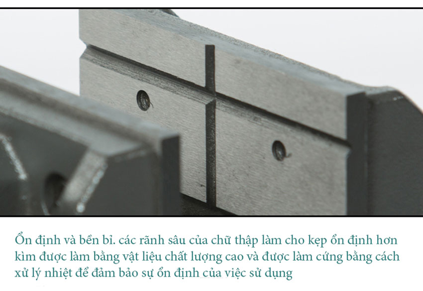 - Chất liệu gang cao cấp: Sản phẩm được làm từ gang chất lượng cao, có khả năng chịu nhiệt, chống mài mòn và kháng ăn mòn vượt trội. Điều này giúp ê tô duy trì độ chính xác và bền bỉ qua thời gian sử dụng.