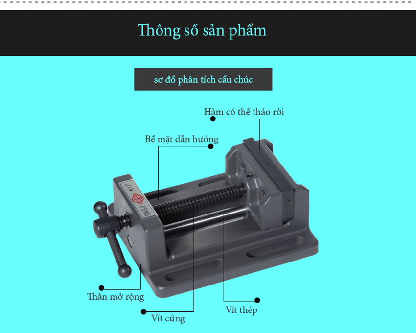 Mô tả chi tiết Ê Tô Gang cao cấp JIN FENG 3inch, 4inch, 6inch, 8inch