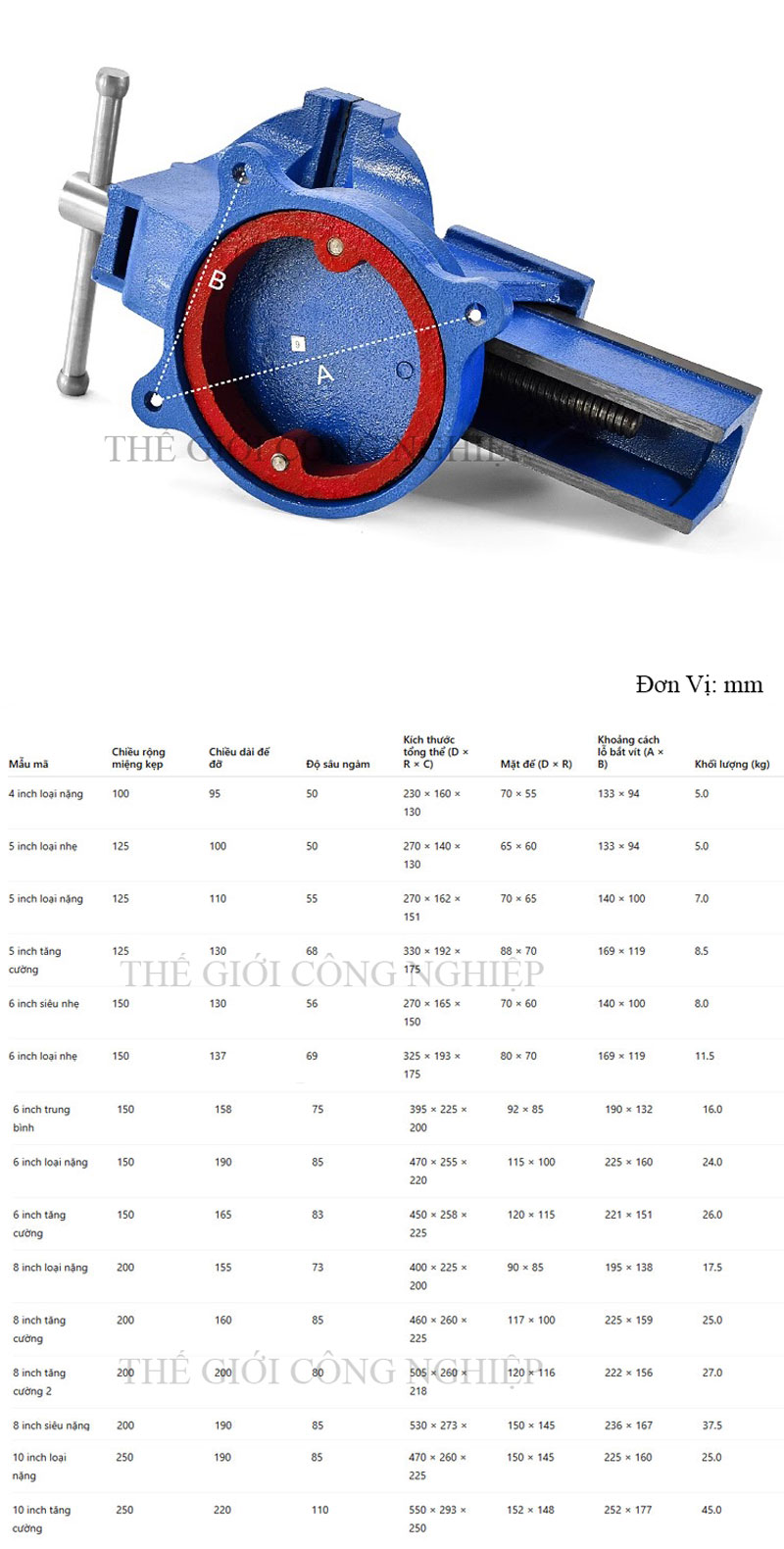 Ê Tô Kẹp Bàn Dạng Xoay 4, 5, 6 Inch – Loại Nhẹ, Trung Bình và Nặng