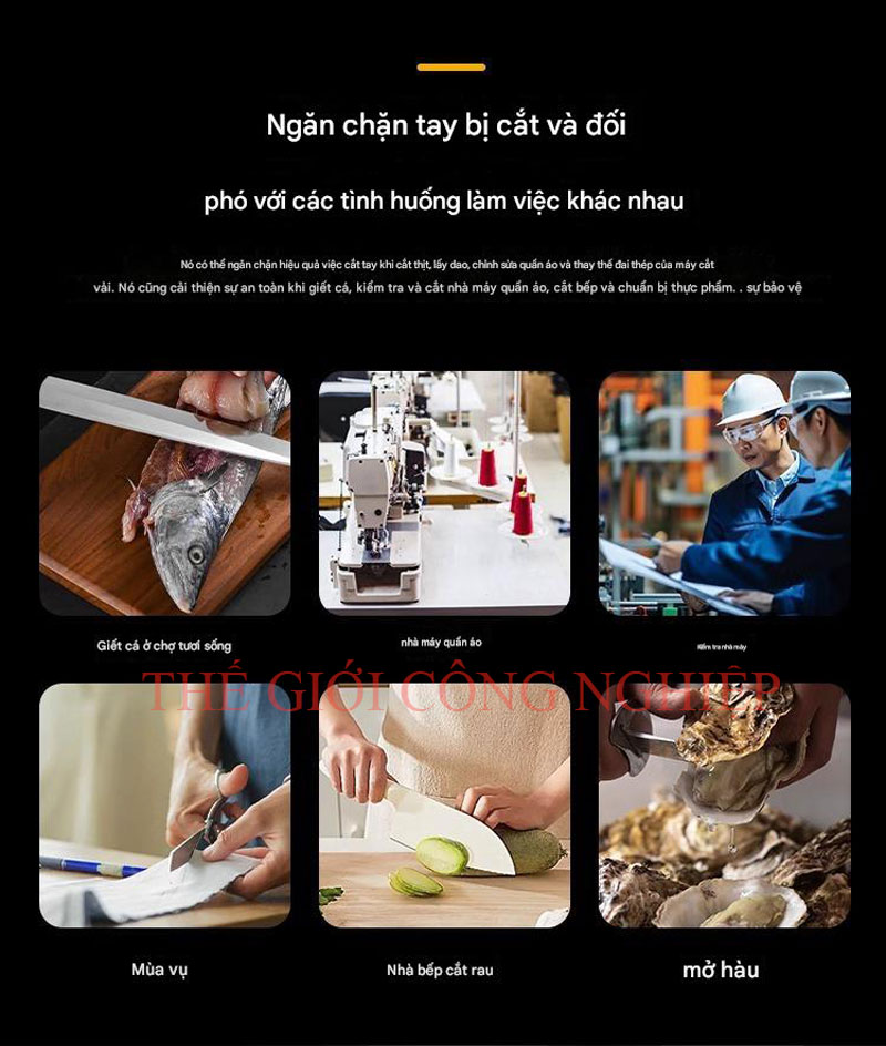 - Ngành gia công kim loại: Sử dụng trong cắt gọt, mài kim loại hoặc các công việc có nguy cơ cao về vết cắt và đâm xuyên.
