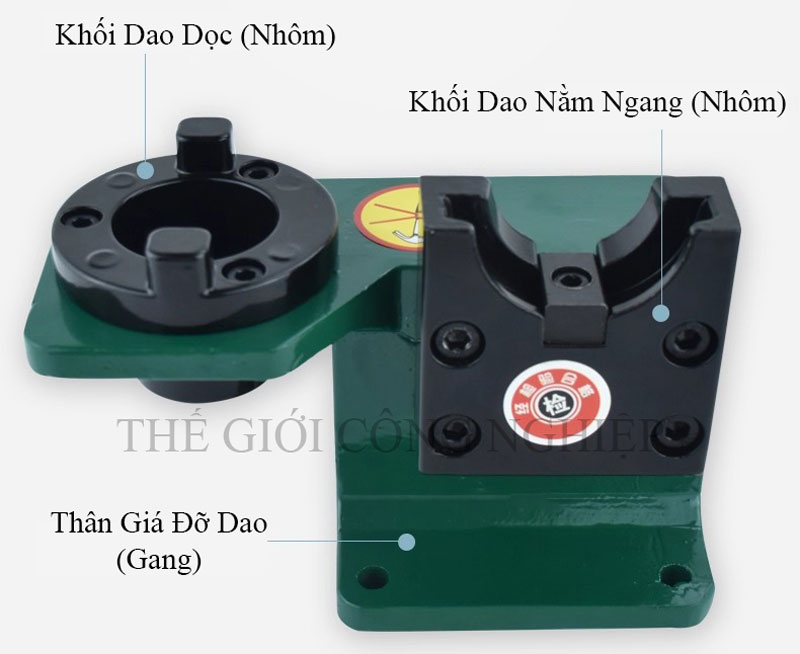 Giá đỡ được chế tạo từ hợp kim nhôm cao cấp, có độ bền cao, chống ăn mòn, trọng lượng nhẹ nhưng vẫn đảm bảo khả năng chịu lực tốt. Bề mặt gia công chính xác, hạn chế rung lắc và bảo vệ dao cụ khỏi trầy xước khi thao tác.