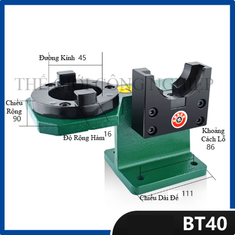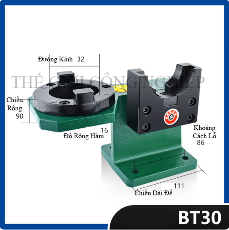 Giá đỡ dao CNC – Khóa dao trung tâm, tháo lắp dao BT30/BT40/BT50 là phụ kiện chuyên dụng hỗ trợ trong quá trình bảo trì và thay thế dao cụ trên các máy CNC. Sản phẩm được thiết kế để cố định chắc chắn các loại dao tiêu chuẩn BT, giúp việc tháo lắp, siết chặt hoặc nới lỏng dao cụ trở nên an toàn, nhanh chóng và chính xác hơn.