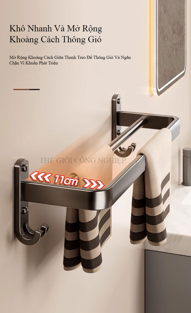 - Thanh treo khăn chính: Dùng để treo khăn tắm, khăn mặt, hoặc quần áo.
