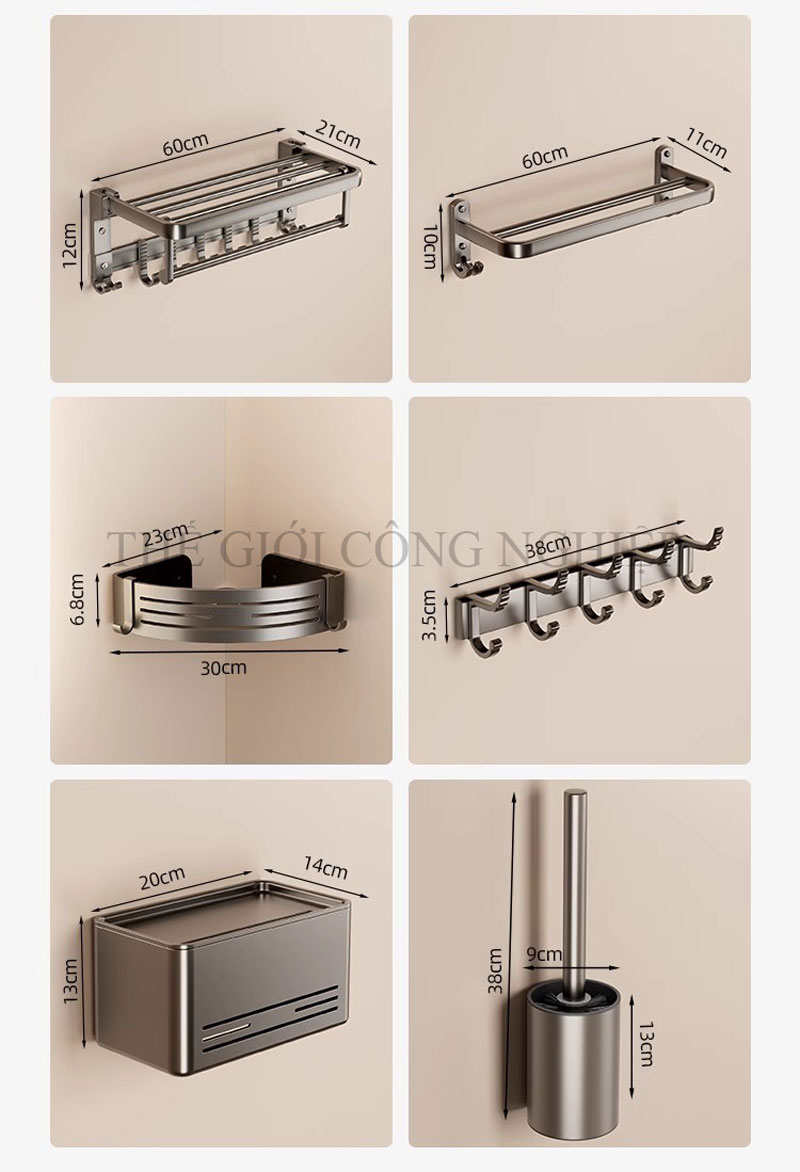 Mô tả chi tiết Giá treo khăn nhôm phòng tắm kèm phụ kiện giá để đồ không cần khoan A3