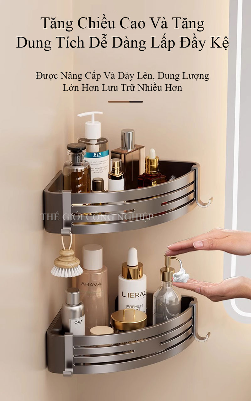 - Kệ để đồ phía trên: Đặt các vật dụng như dầu gội, sữa tắm, đồ dùng vệ sinh cá nhân hoặc các phụ kiện nhỏ.