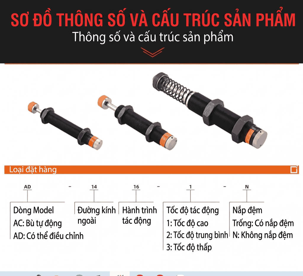 - Loại sản phẩm: Giảm chấn dầu thủy lực