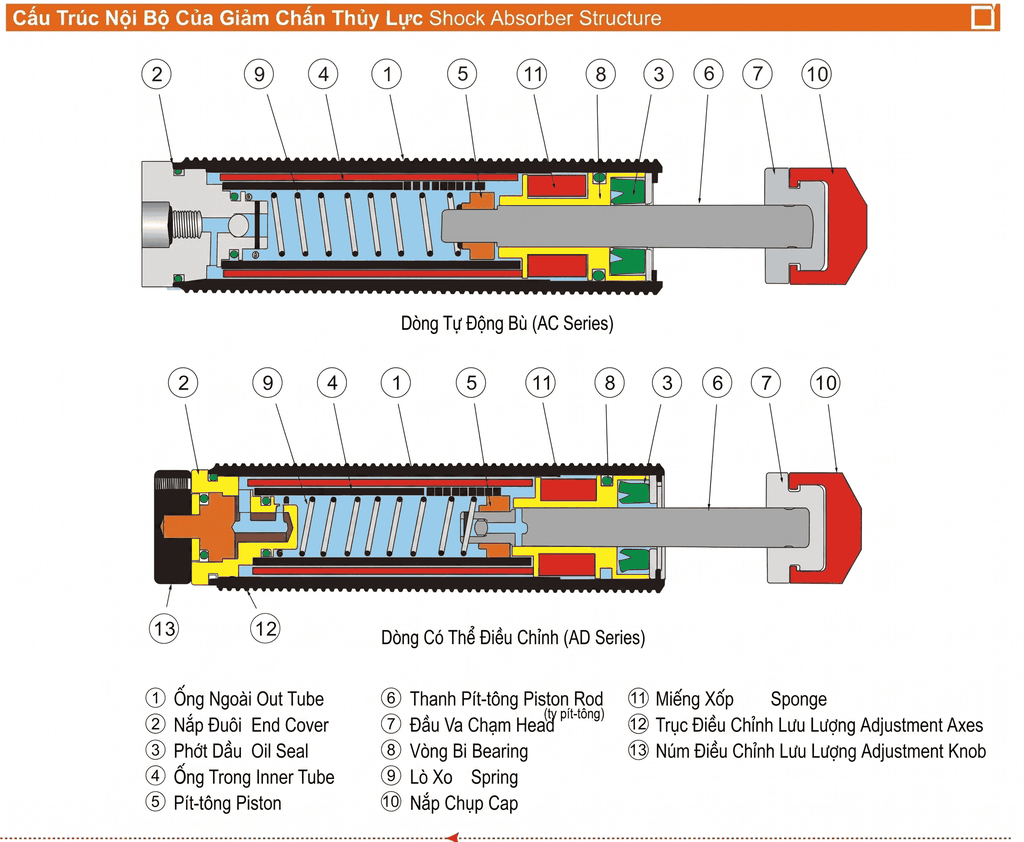 - Thân giảm chấn bằng kim loại chịu lực cao