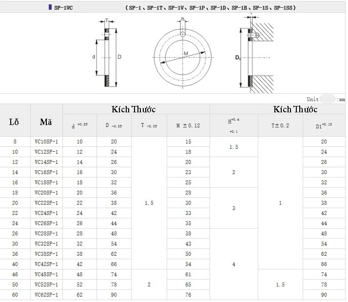 Bảng Thông Số Kỹ Thuật Gioăng Đệm Bằng Đồng
