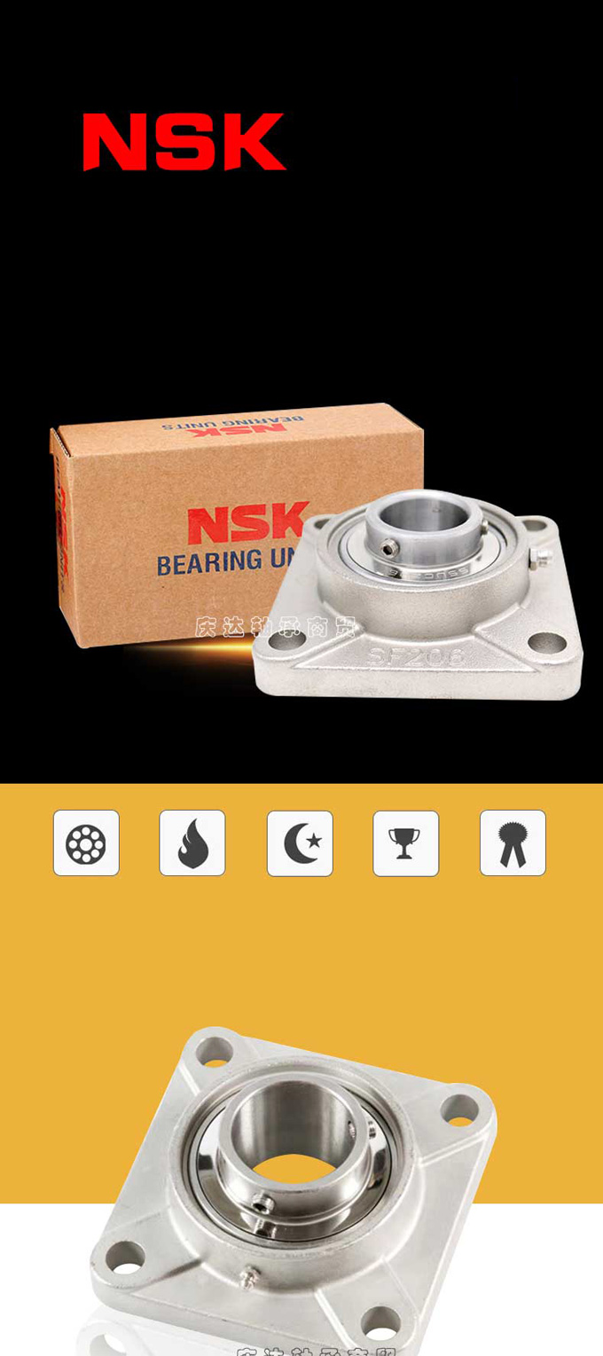 Gối đỡ NSK inox mã SUCF204–SUCF209 thuộc dòng gối vuông 4 lỗ (Square Flange Type), gồm 2 phần chính: