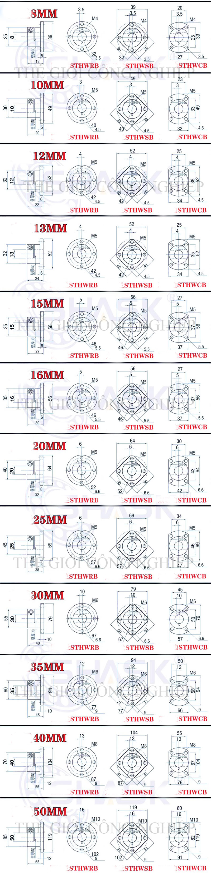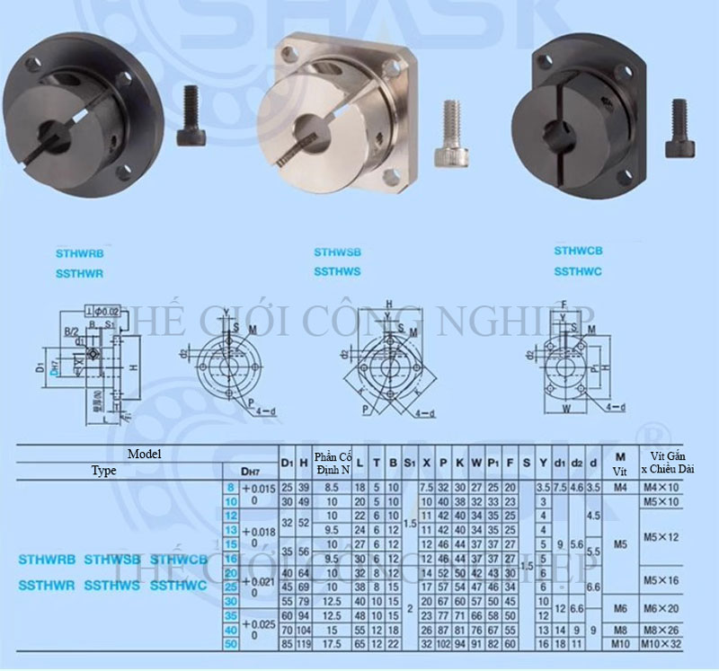 Gối đỡ SHDF, SHDK, SHDH là các dòng gối đỡ tiêu chuẩn chuyên dùng để cố định và dẫn hướng trục tròn (trục dẫn hướng hoặc trục tuyến tính) có đường kính từ 8mm đến 50mm, thường ứng dụng trong các hệ thống truyền động tuyến tính, máy CNC, máy in 3D, máy tự động hóa và thiết bị cơ khí chính xác.