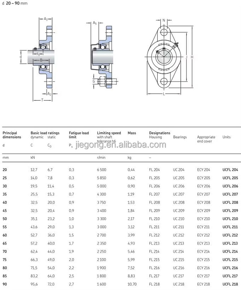 Từ UCFL 203 → UCFL 210 phù hợp trục từ ~17mm đến ~50mm (tùy tiêu chuẩn).