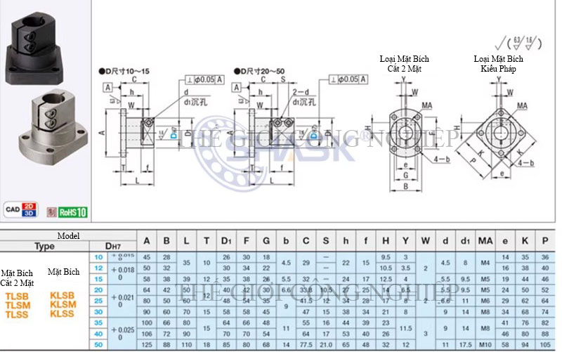 1. Gối đỡ TLSB (Type TLSB – Square Flanged Support Unit)