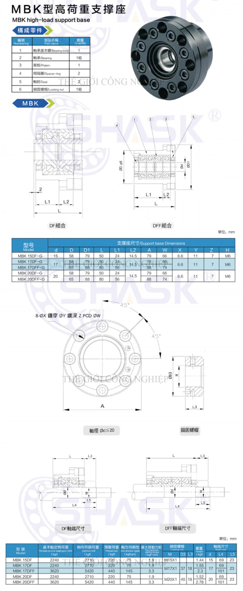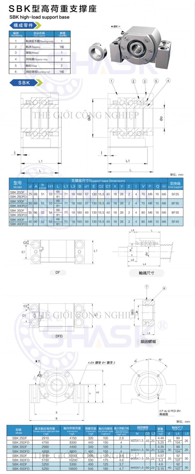 | Đường kính trục vít | 20 / 25 / 30 / 35 / 40 / 50 mm |
