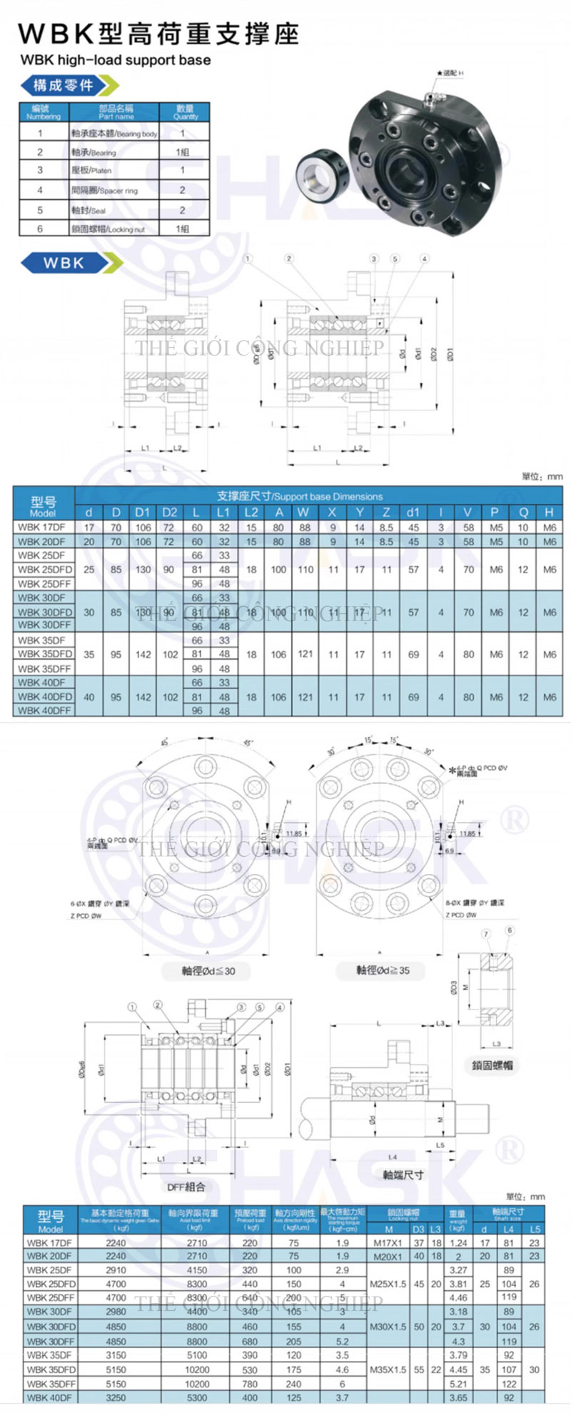 WBK20 / 25 / 30 / 35 / 40 / 50: Kích thước tương ứng với đường kính trục vít me.