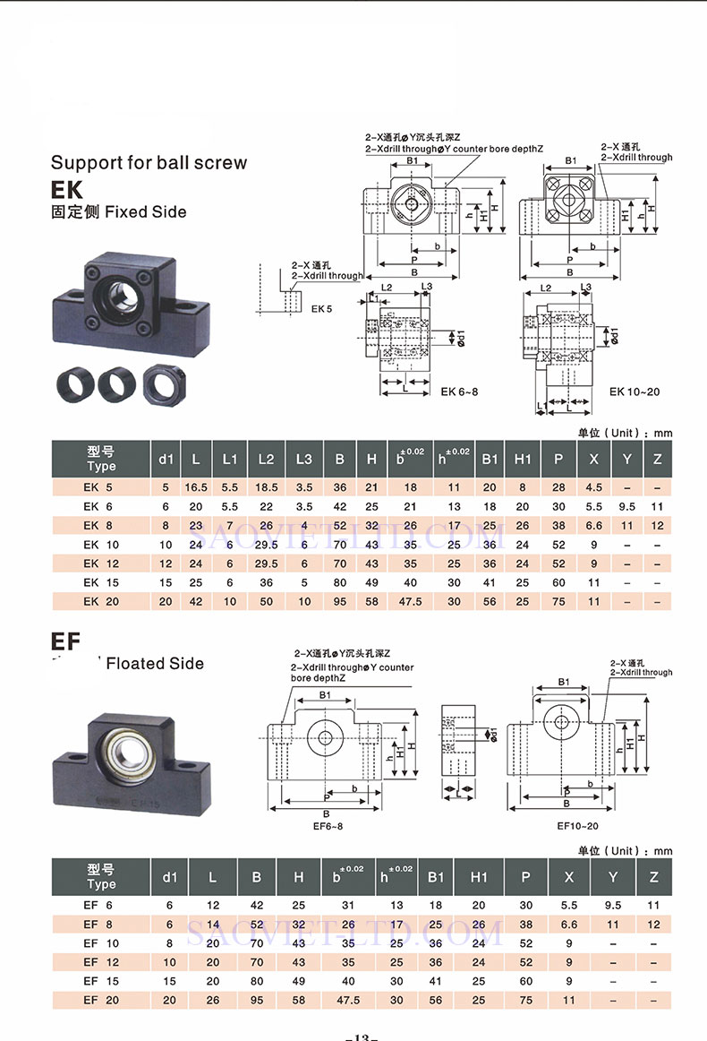 Các kích thước EK/EF từ 8 đến 40 tương ứng với đường kính trục vít me Ø8–Ø40mm, phù hợp với nhiều loại vít me bi phổ biến. Thiết kế nhỏ gọn, dễ lắp đặt, ổ bi được căn chỉnh sẵn giúp giảm thời gian lắp ráp và nâng cao độ chính xác hệ thống.