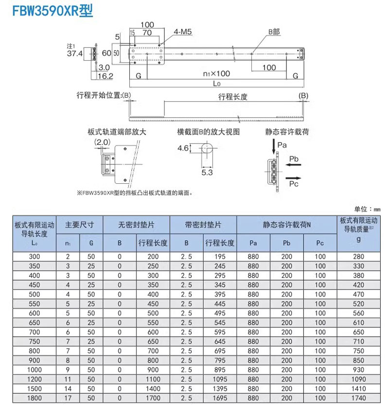 Mô tả chi tiết Thanh ray, con trượt FBW3590XR