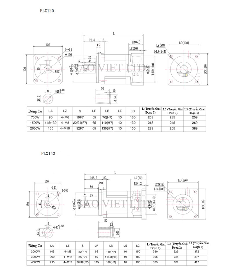 Bảng Thông Số Bộ Giảm Tốc Hộp Số Bánh Răng Hành Tinh Vuông Góc ZPLX