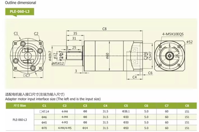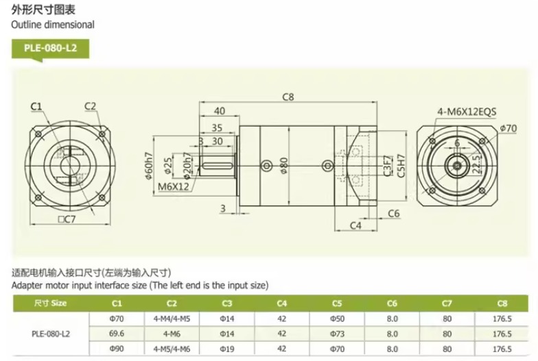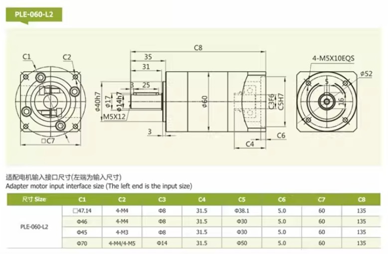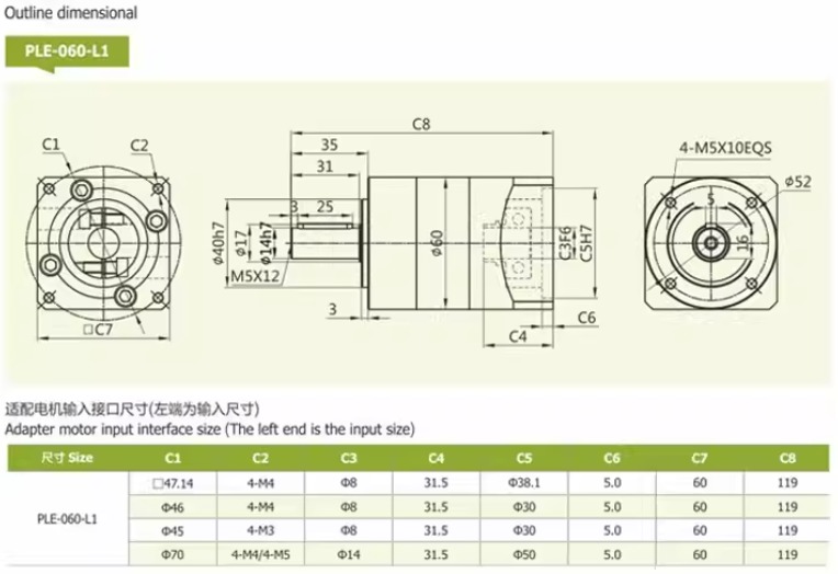 PLE 60 → dùng cho servo nhỏ, máy mini, cơ cấu chính xác nhẹ.