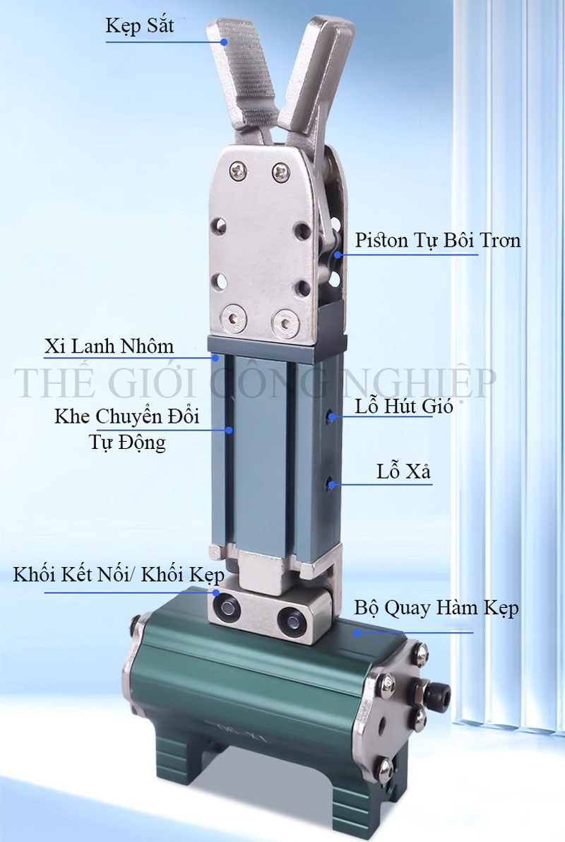 Hàm kẹp: Làm bằng thép chịu lực, được xử lý bề mặt chống mài mòn, đảm bảo tuổi thọ cao trong môi trường công nghiệp.
