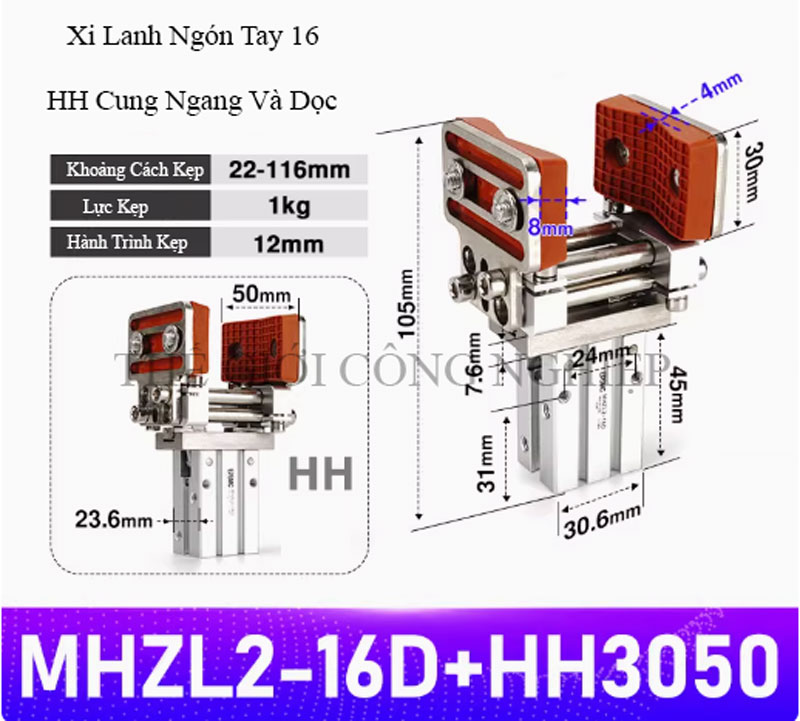 Kẹp khí song song MHZ2-1620D là thiết bị chấp hành khí nén chuyên dùng trong các hệ thống tay gắp robot tự động, dây chuyền sản xuất hoặc máy móc thao tác linh kiện chính xác. Với thiết kế ngàm kẹp song song, cơ cấu trượt dẫn hướng chính xác và càng kẹp mở rộng, sản phẩm này mang lại lực kẹp ổn định, độ lặp lại cao và hiệu quả thao tác vượt trội.