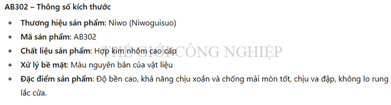Khóa tay nắm bật AB301 / AB302 / AB303 là dòng khóa phẳng chuyên dụng cho tủ điện, tủ phân phối và tủ công nghiệp, được thiết kế theo tiêu chuẩn an toàn và độ bền cao. Sản phẩm được chế tạo từ hợp kim nhôm hoặc thép chất lượng cao, xử lý bề mặt bằng công nghệ mạ hoặc sơn tĩnh điện, giúp chống oxy hóa, chống ăn mòn và duy trì vẻ ngoài sáng đẹp trong thời gian dài.