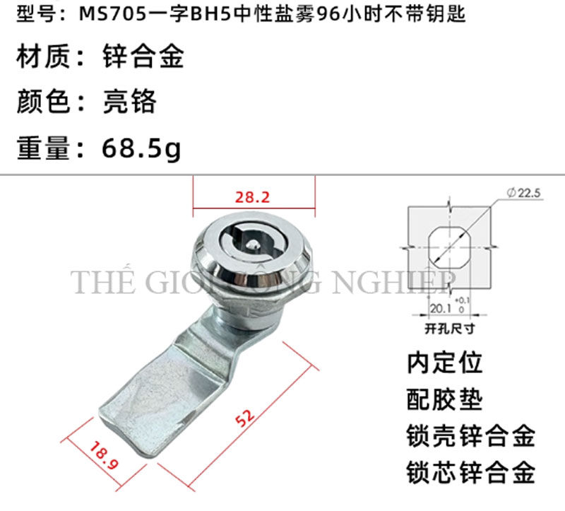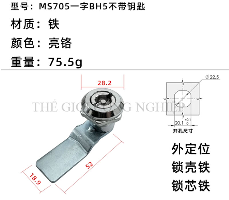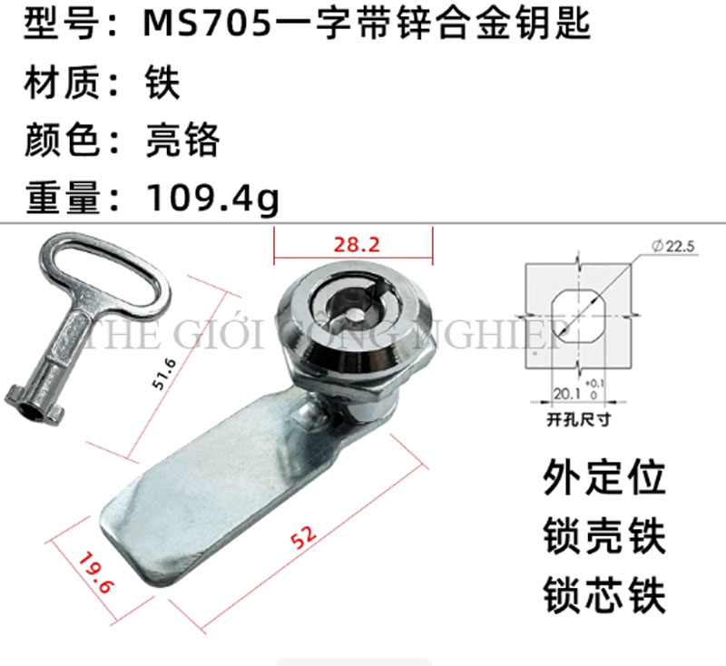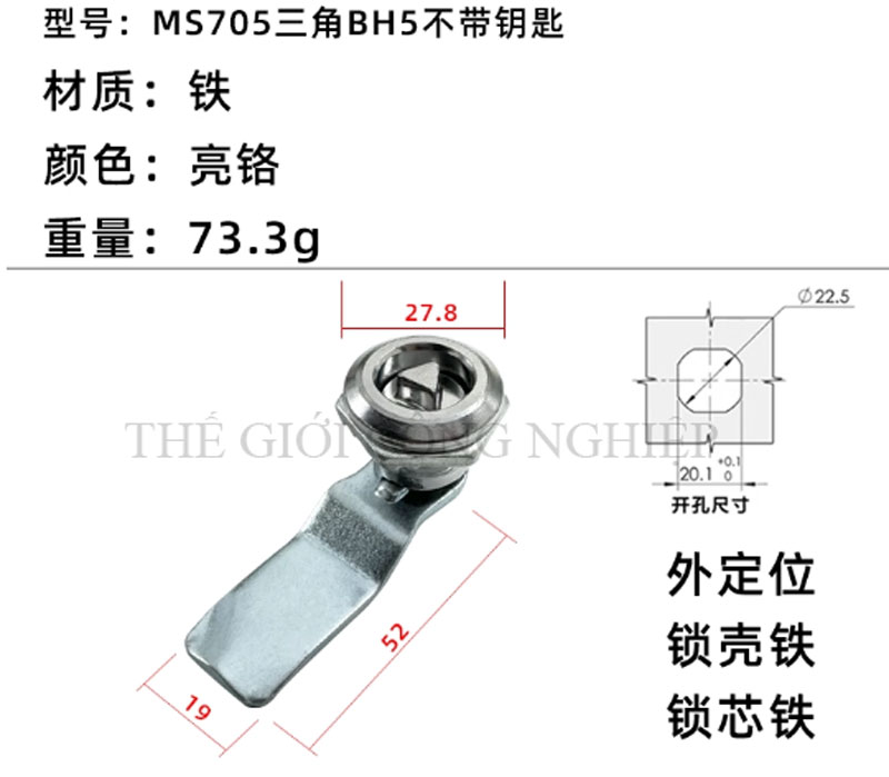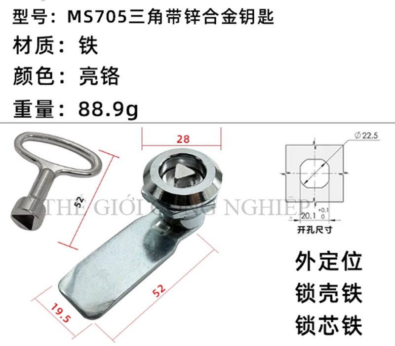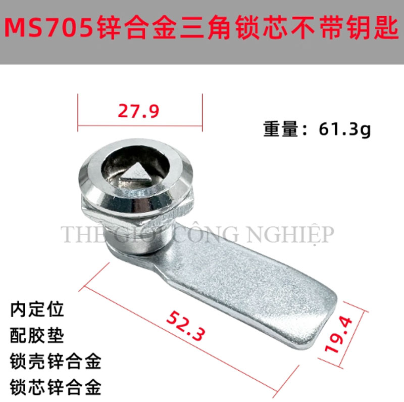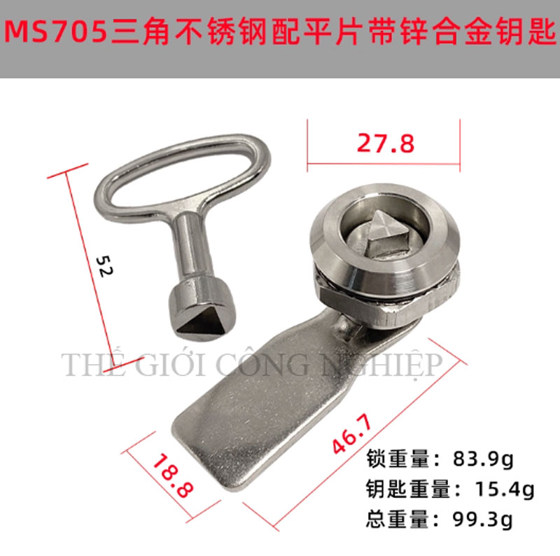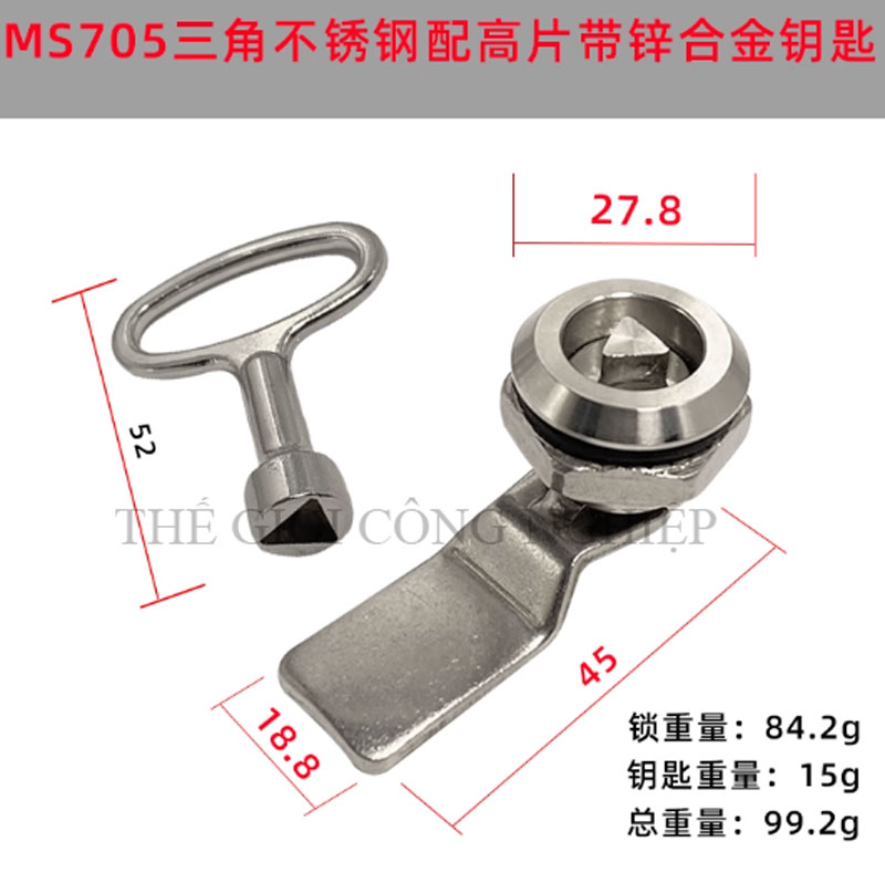 Khóa tủ điện MS705 / MS406 là dòng khóa tam giác một rãnh được thiết kế từ thép không gỉ (inox), chuyên dùng cho các loại tủ điện, tủ rác công cộng, tủ đèn quảng cáo, tủ phân phối và tủ cơ khí. Với thiết kế đơn giản nhưng chắc chắn, sản phẩm mang lại độ an toàn cao, thao tác đóng mở thuận tiện và tuổi thọ lâu dài.