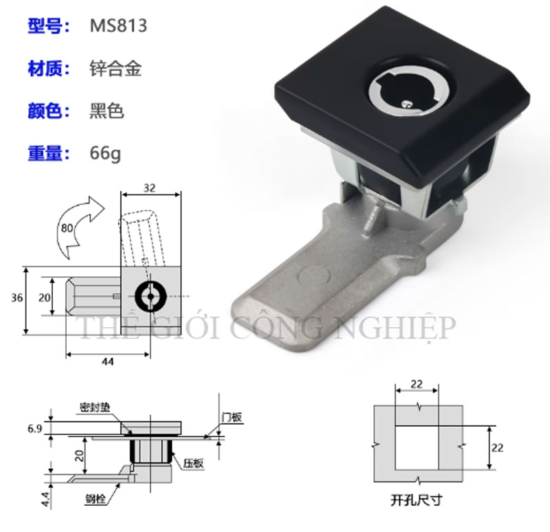 Khóa MS813 có cấu trúc cơ học bền vững, sử dụng cơ chế cam trụ giúp giữ chặt cánh tủ, tránh rung lắc trong quá trình vận hành thiết bị điện. Sản phẩm dễ dàng lắp đặt và thay thế, tương thích với nhiều dòng tủ điện công nghiệp, tủ điều khiển, tủ phân phối. Nhờ khả năng chống oxi hóa và độ cứng cao, khóa không bị biến dạng sau thời gian dài sử dụng.