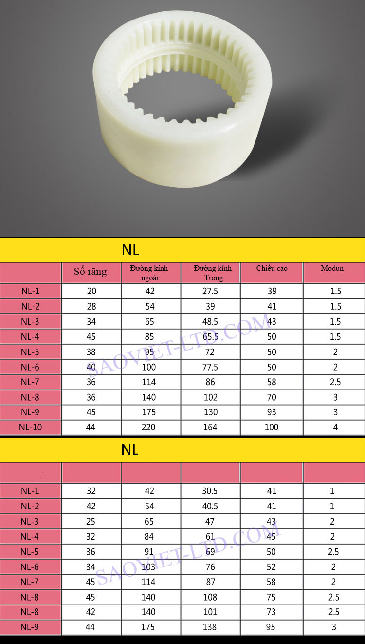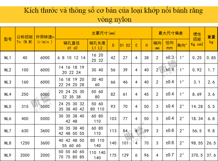 THÔNG SỐ KỸ THUẬT KHỚP NỐI VỎ NHỰA NILON KIỂU NL