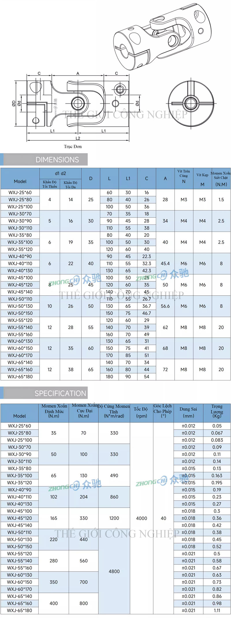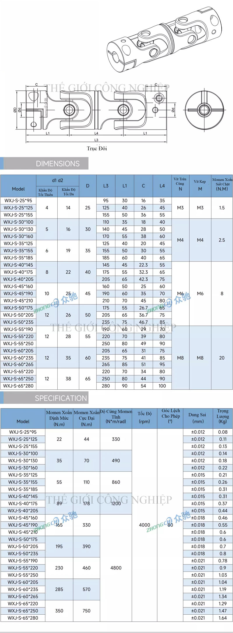 Mô tả chi tiết Khớp Nối Trục Các Đăng