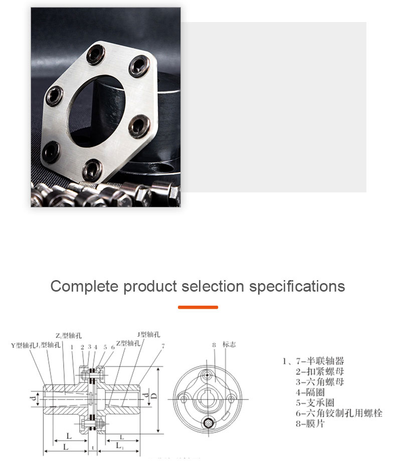 Khớp nối trục kiểu JMI là khớp nối trục đàn hồi kiểu mặt bích, được thiết kế để truyền mô-men xoắn giữa hai trục trong khi hấp thụ rung động và bù sai lệch trục. Cấu tạo gồm 3 phần chính: