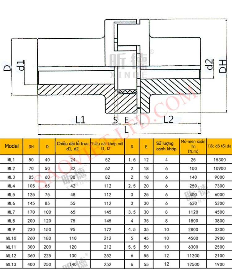 Khớp nối trục ML là khớp nối cứng loại mặt bích, dùng để truyền mô-men xoắn giữa hai trục đồng trục một cách chính xác và ổn định, gồm các thành phần chính sau: