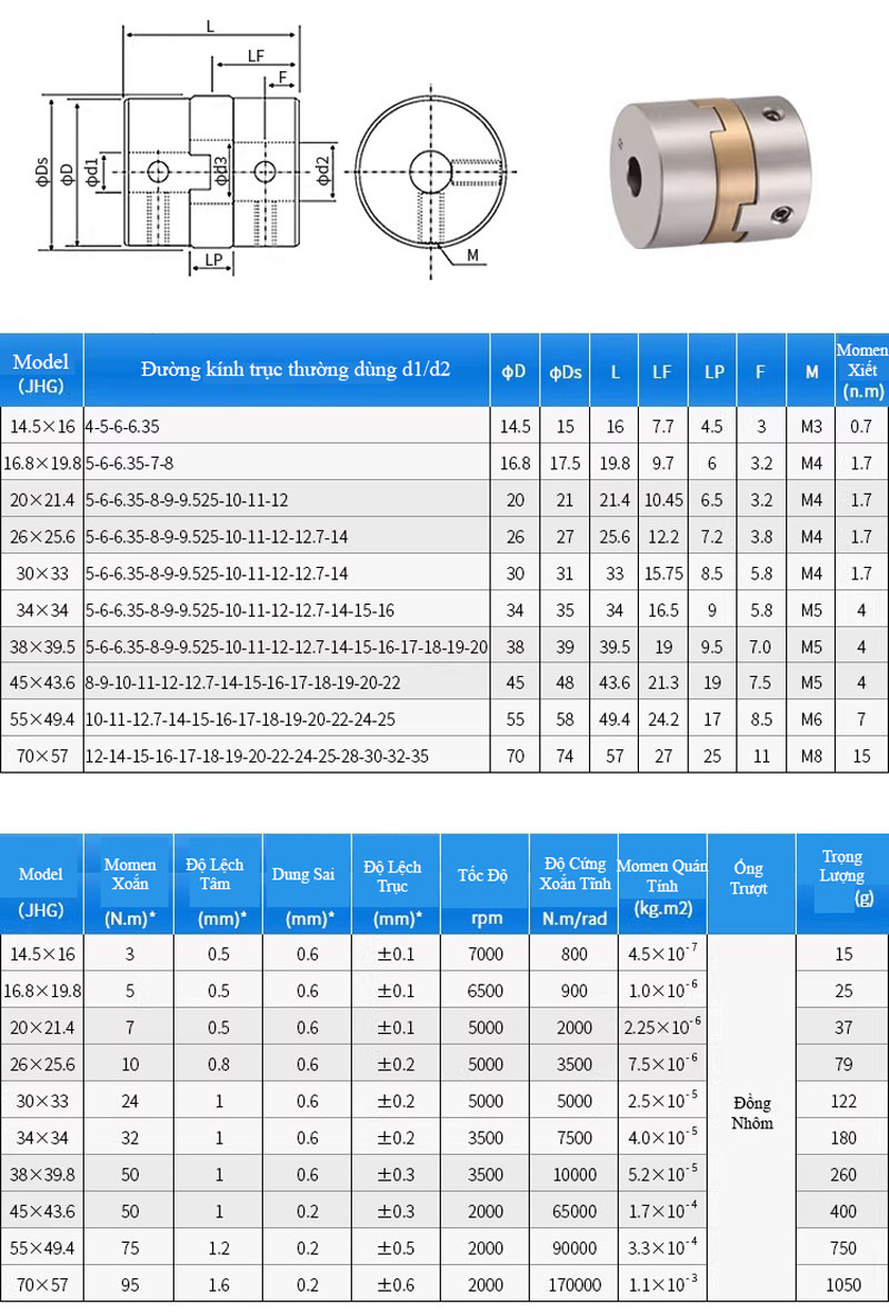 Mô tả chi tiết Khớp nối trượt chữ thập inox 304 – Khớp nối servo – Coupling cho trục vít me