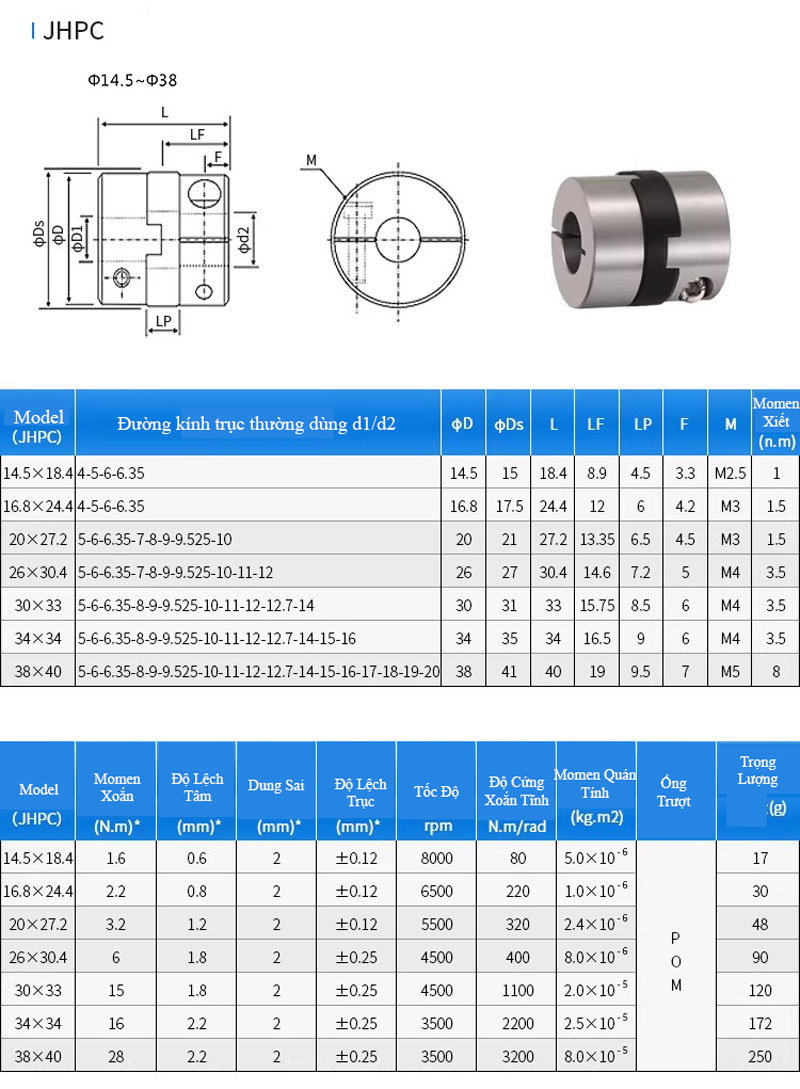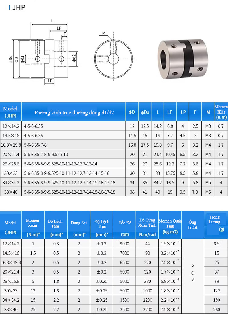 Khớp nối trượt chữ thập inox 304 là khớp nối servo độ chính xác cao, được thiết kế để liên kết trục động cơ servo với trục vít me, trục dẫn hướng hoặc trục truyền động trong các hệ cơ khí chính xác. Cấu trúc trượt chữ thập (Oldham coupling) cho phép bù sai lệch đồng tâm, lệch góc và lệch song song hiệu quả, đồng thời vẫn đảm bảo truyền mô-men ổn định và chính xác.