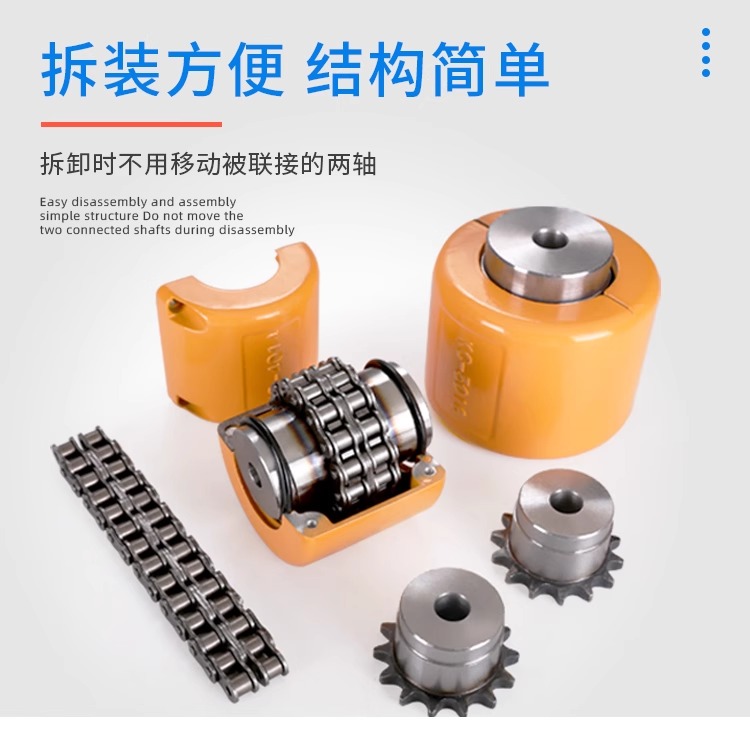 Khớp nối xích KC là loại khớp nối cơ khí dùng xích con lăn và đĩa xích để truyền mô-men xoắn giữa hai trục. Cấu tạo bao gồm 3 thành phần chính: