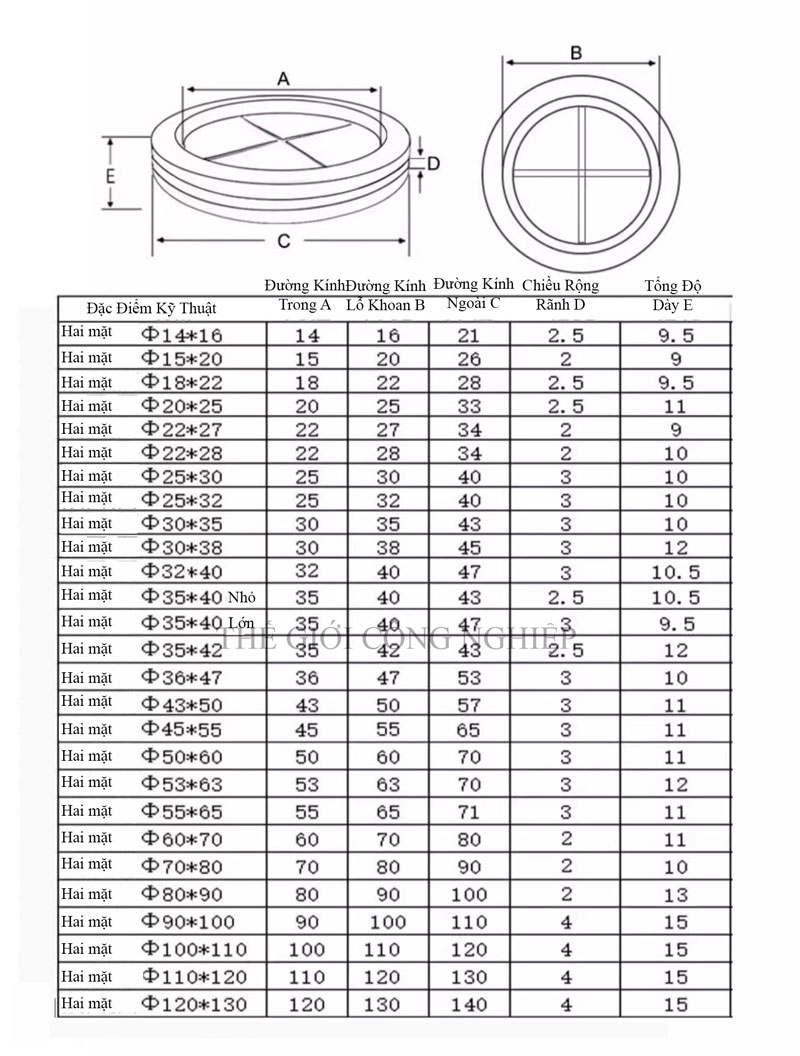 Có nhiều kích cỡ: Φ16, Φ20, Φ25, Φ30, Φ35...