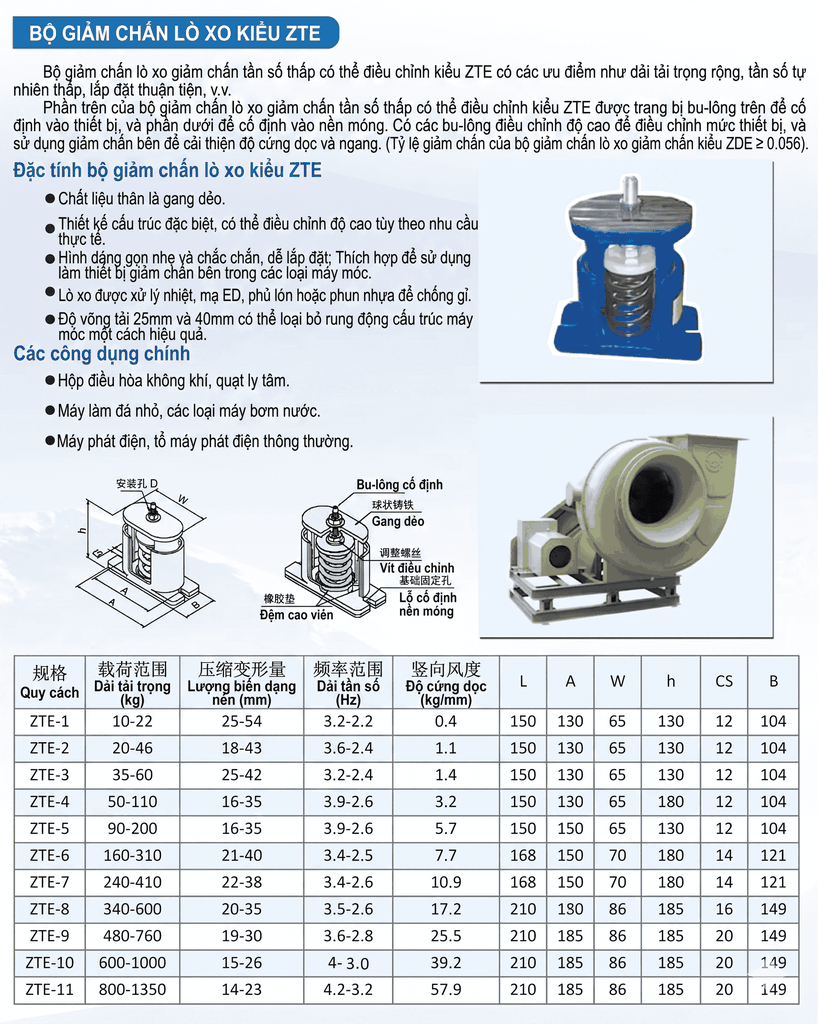 Lò xo giảm chấn ZTE được thiết kế theo nguyên lý đàn hồi cơ học, sử dụng lực nén và giãn để hấp thụ năng lượng sinh ra từ rung động hoặc va đập.