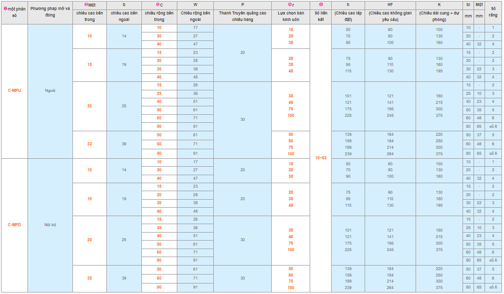 Bảng Thông Số Kỹ Thuật Máng Cáp Đi Dây Điện Có Thể Mở Đóng Nắp C-MPU/CMPD