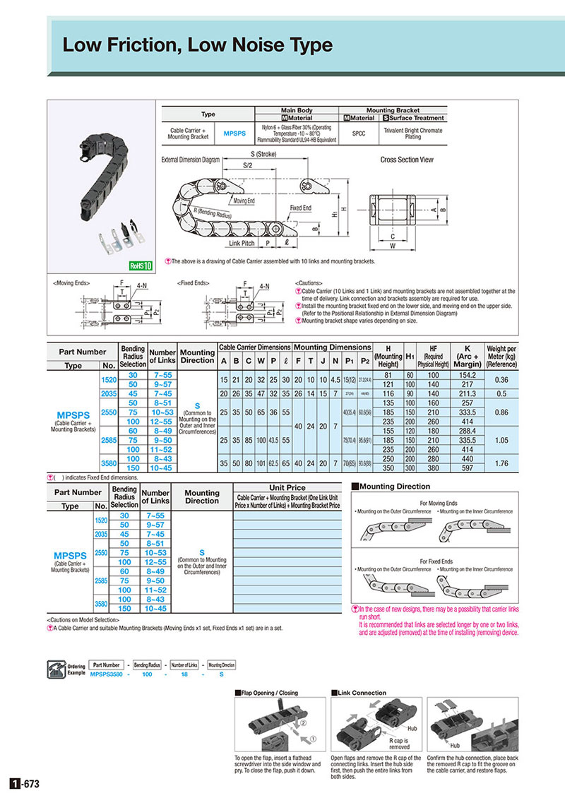 Vật liệu và Cấu trúc Giảm Chấn: Dòng MPSPS sử dụng vật liệu nhựa kỹ thuật tiên tiến có đặc tính tự bôi trơn và hấp thụ rung động tốt hơn so với nhựa tiêu chuẩn.