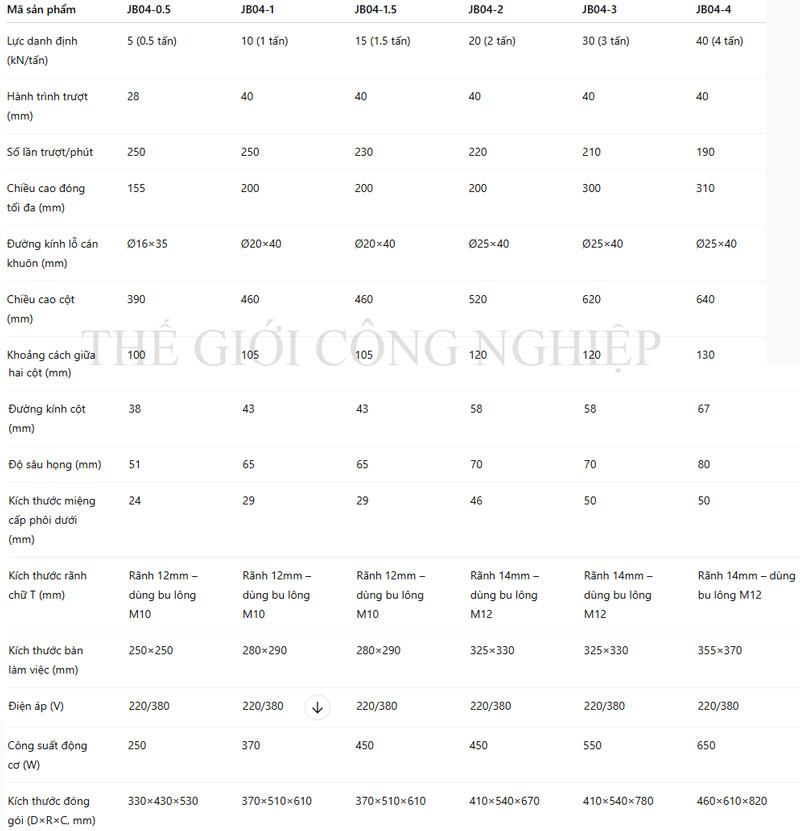 | Mã máy | JB04-1 | JB04-1.5 | JB04-2 | JB04-3 | JB04-4 |