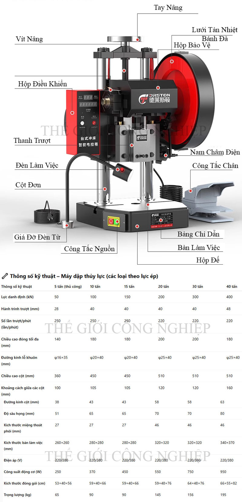 Lực dập: 10KN / 15KN / 20KN / 30KN / 40KN