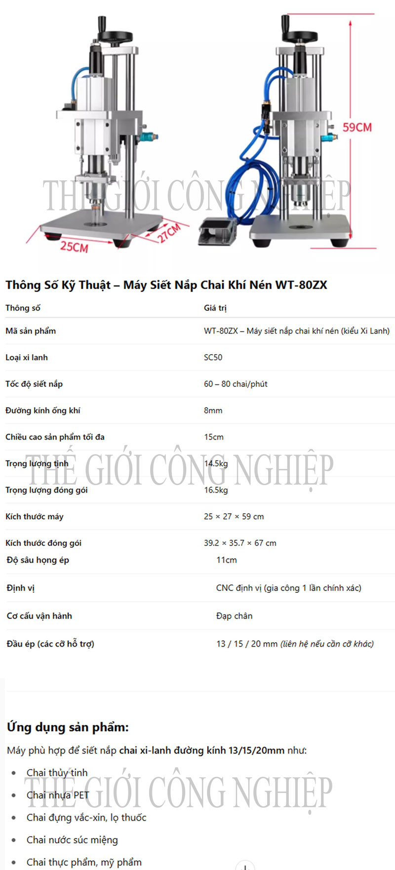 Thông số kỹ thuật tham khảo (dòng khí nén SC50 – WT-80ZX):