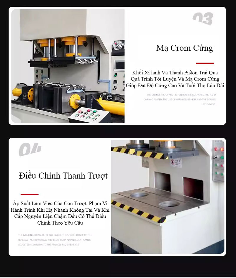 Dòng máy có dải lực ép rộng từ 5 tấn đến 200 tấn, đáp ứng đa dạng nhu cầu gia công từ chi tiết nhỏ đến sản phẩm có tải trọng lớn.