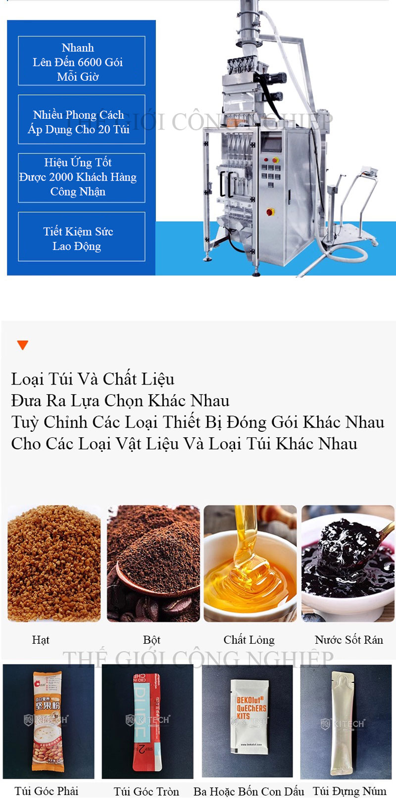 Tạo túi tự động: túi dạng thanh, có thể điều chỉnh kích thước túi linh hoạt.