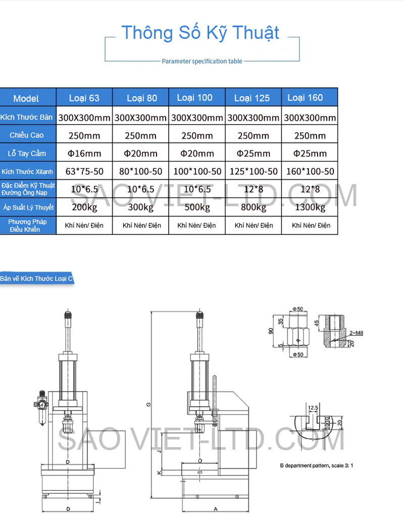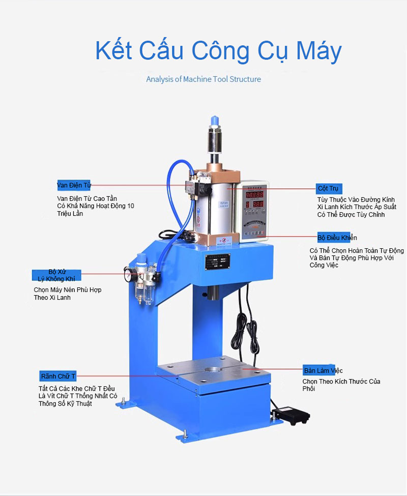 – Tạo lực ép từ 1 đến vài chục tấn, vận hành nhờ áp suất khí nén ổn định.